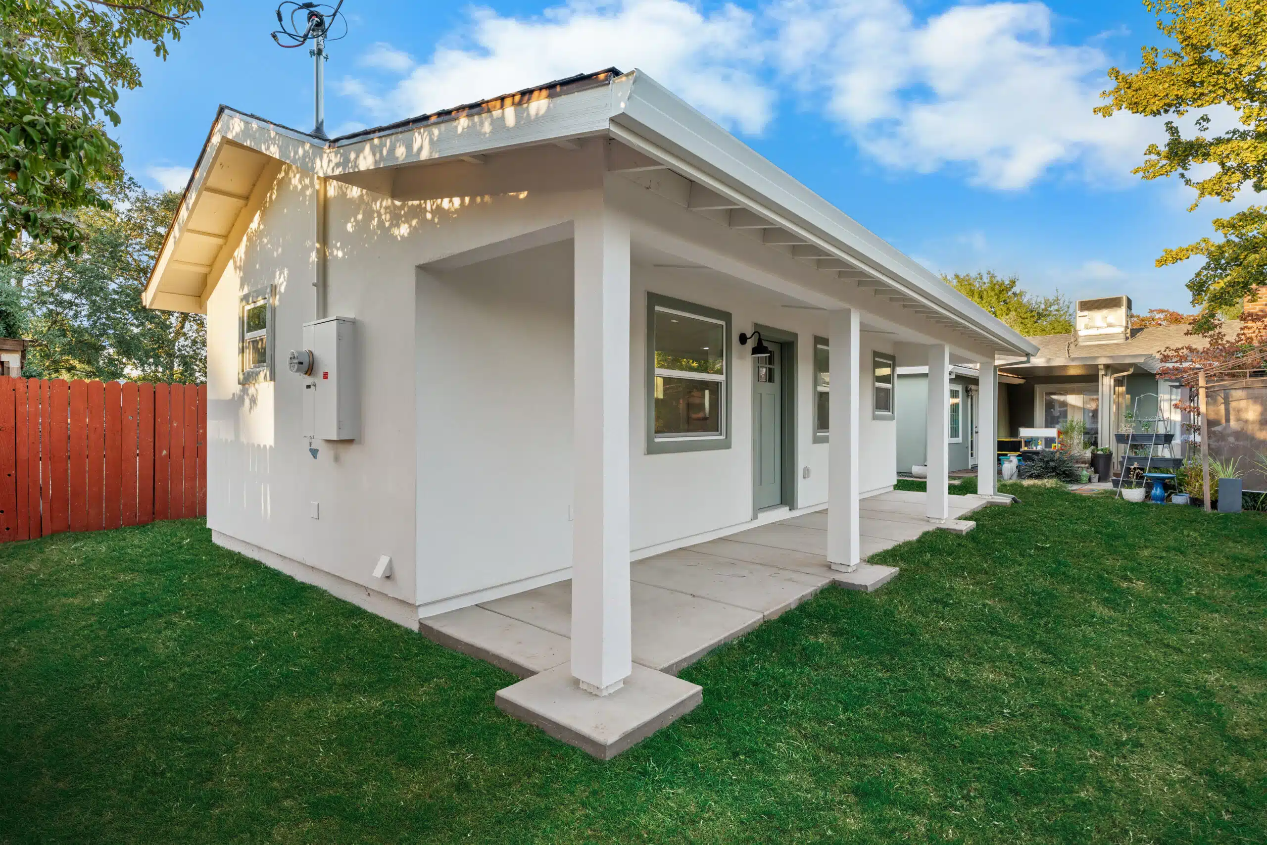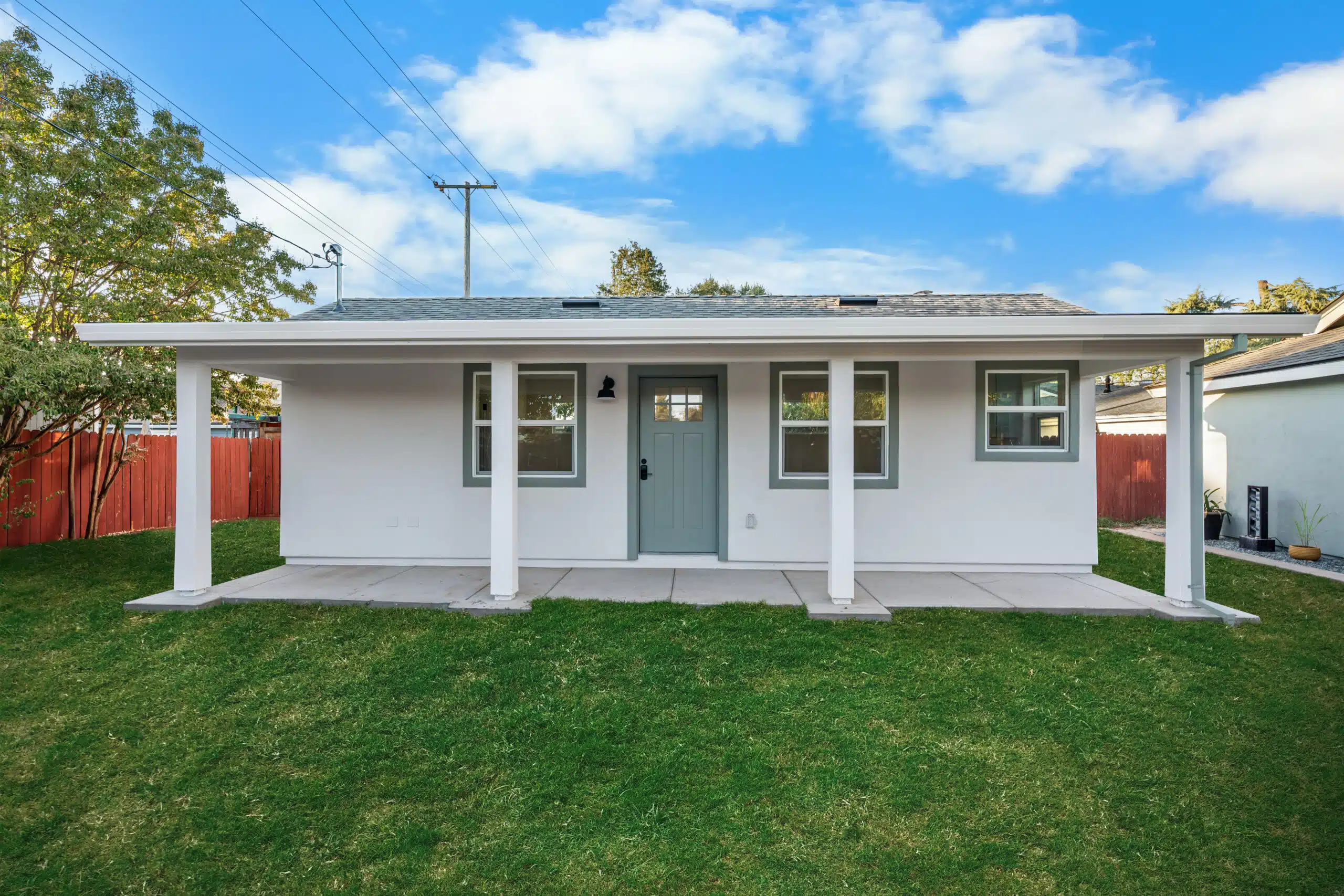 This charming 390 sq. ft. studio ADU in Sacramento shows how a thoughtfully designed backyard home can add real value without taking over the yard. Compact yet highly functional, it includes a 150 sq. ft. covered porch that extends the living space outdoors. Ideal for rental income, hosting guests, or housing family, this practical studio is a smart solution for smaller lots that need flexibility, comfort, and long-term value.