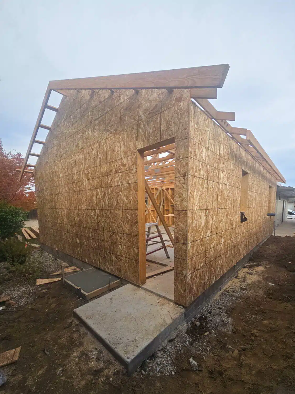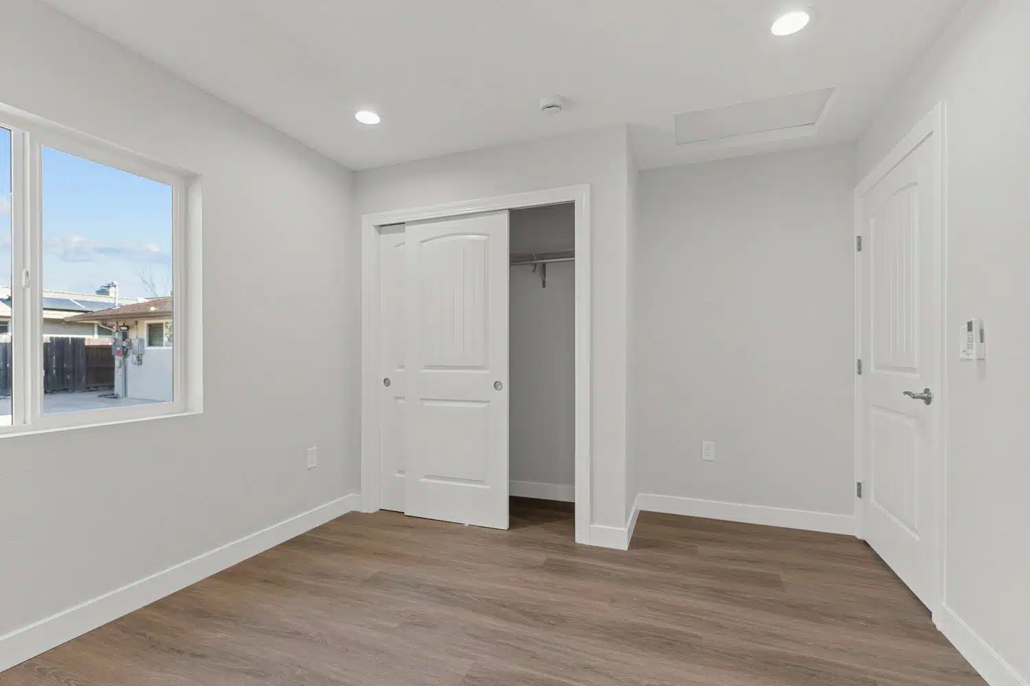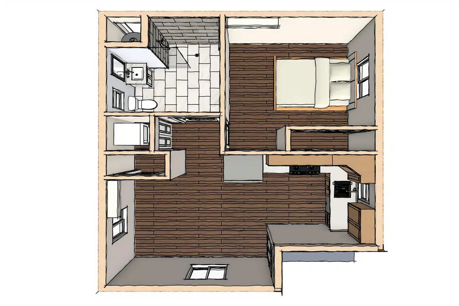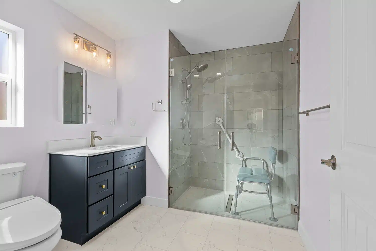 This 500 sq. ft. ADU features a bright open kitchen and living area, a private bedroom with closet, and a full bathroom designed with a curbless shower for easier accessibility. The efficient layout also includes dedicated laundry and additional storage, making the space practical for everyday living. Compact yet fully functional, this ADU works well for housing aging parents.