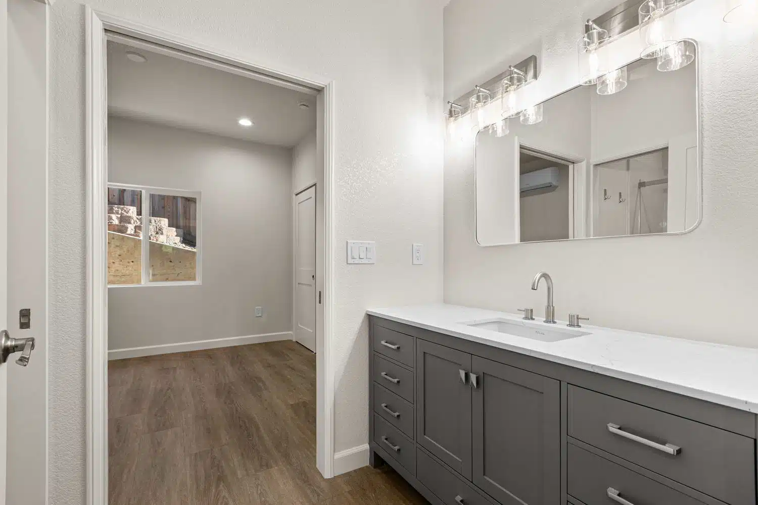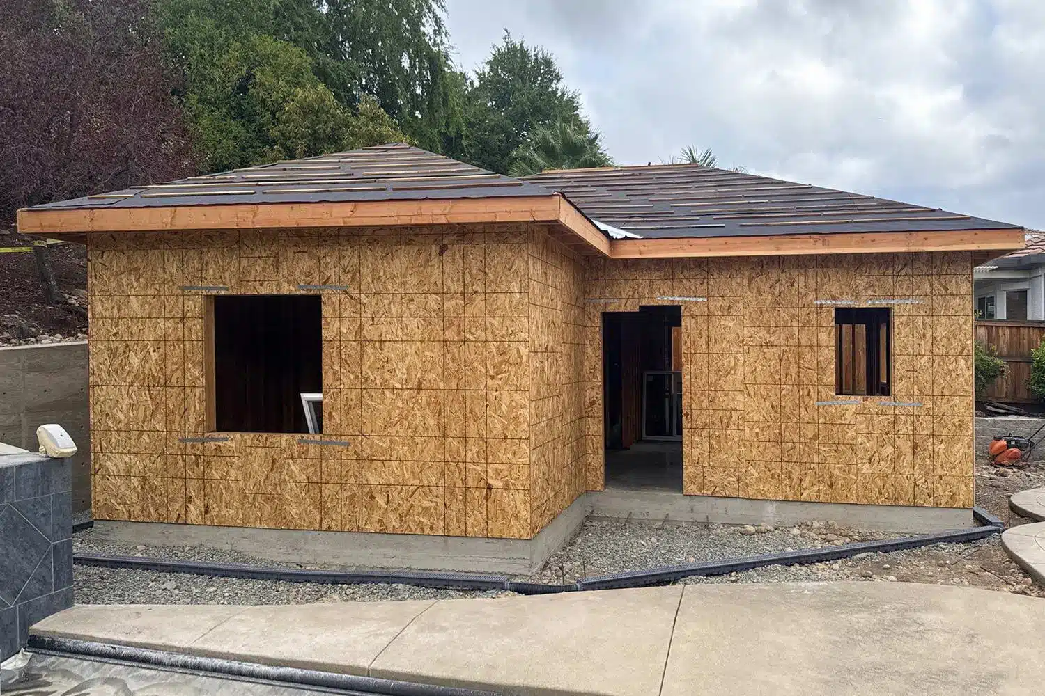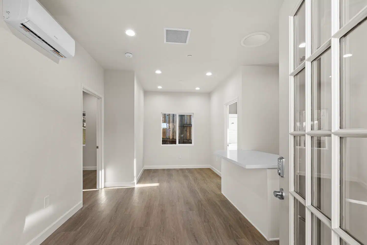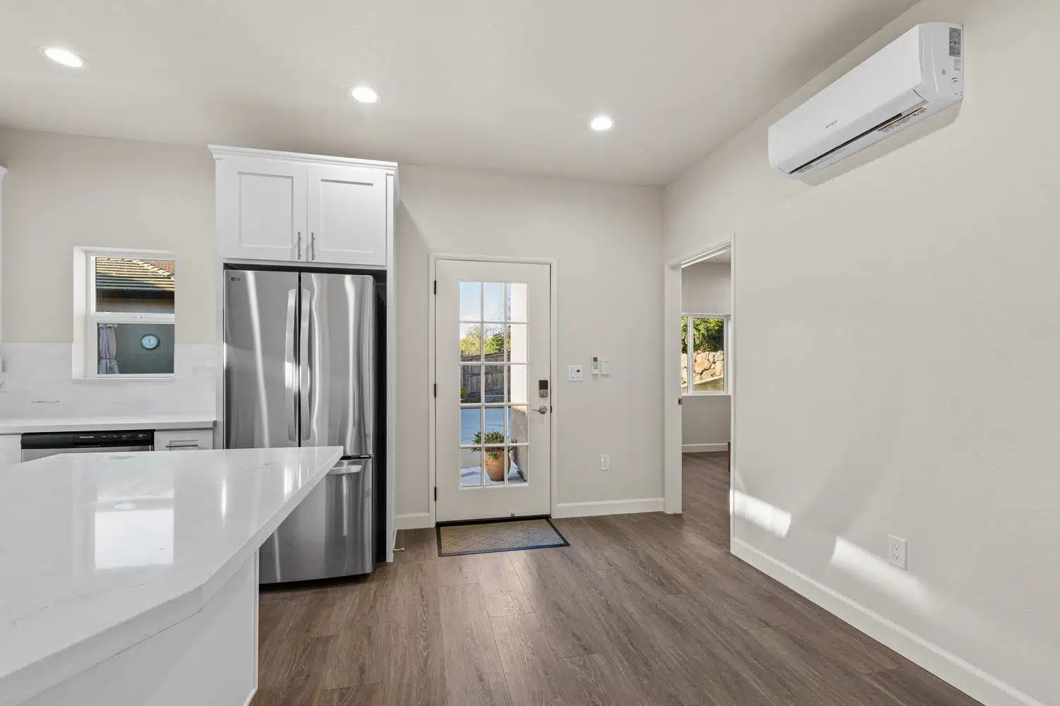 This 710 sq. ft. ADU was built as a quiet retreat separate from the main house. Designed for a homeowner who works night shifts, it features upgraded insulation for improved soundproofing and comfortable rest. The layout includes 2 spacious bedrooms with closets and shared access to a Jack-and-Jill bathroom. A large kitchen with an island, 9-foot ceilings, and a half bath with laundry complete this functional and comfortable living space.