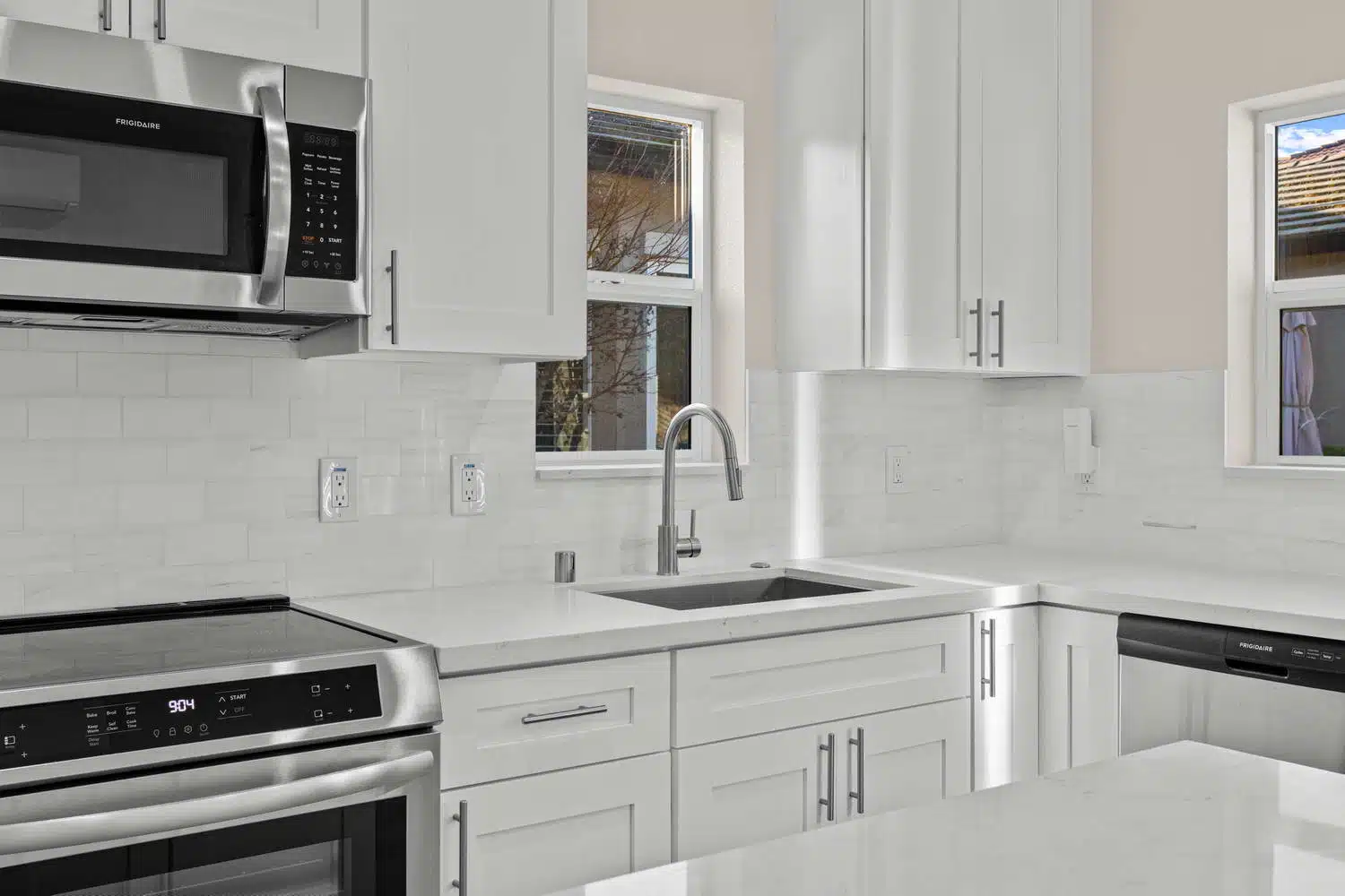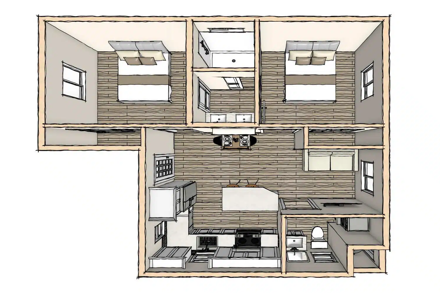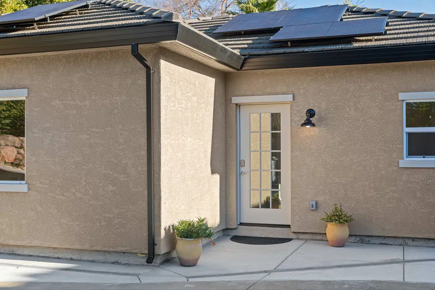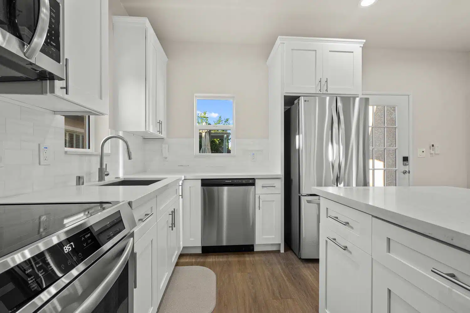 This 710 sq. ft. ADU was built as a quiet retreat separate from the main house. Designed for a homeowner who works night shifts, it features upgraded insulation for improved soundproofing and comfortable rest. The layout includes 2 spacious bedrooms with closets and shared access to a Jack-and-Jill bathroom. A large kitchen with an island, 9-foot ceilings, and a half bath with laundry complete this functional and comfortable living space.